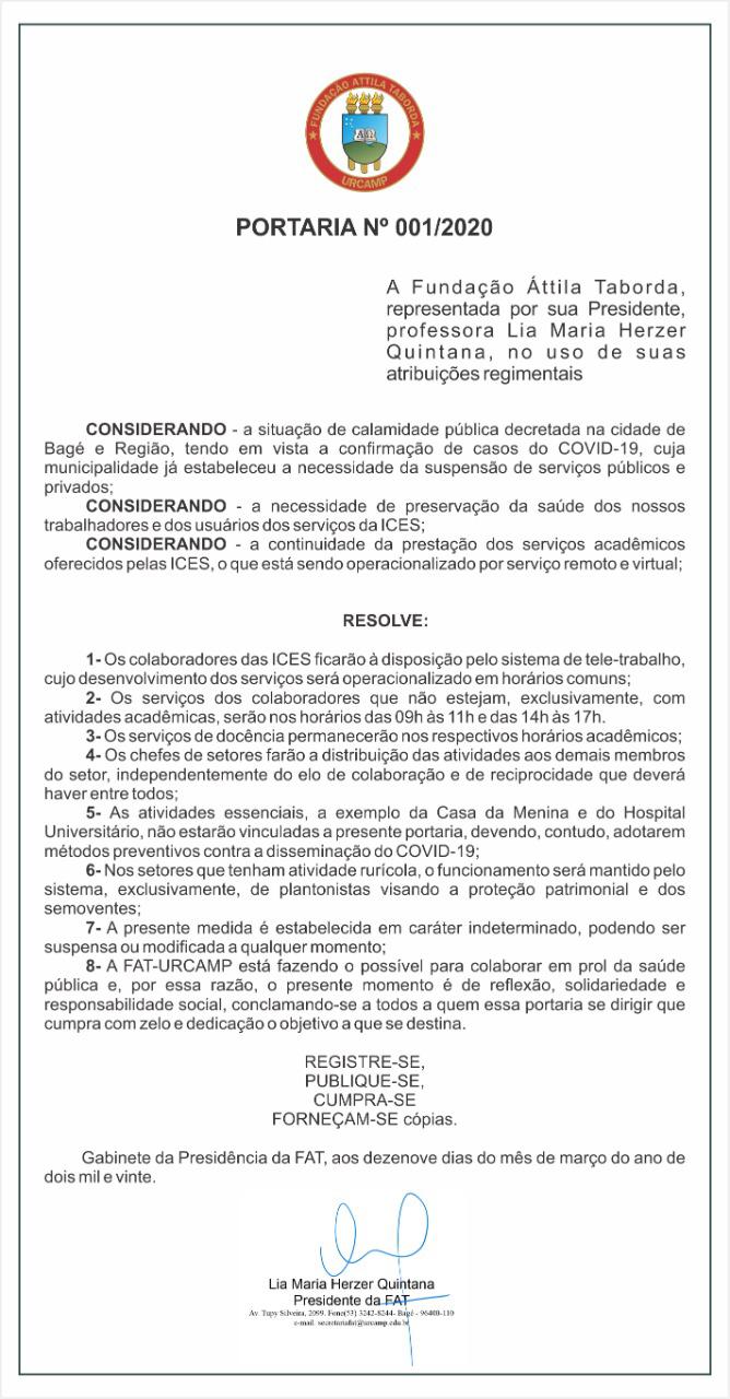 Portaria 001/2020