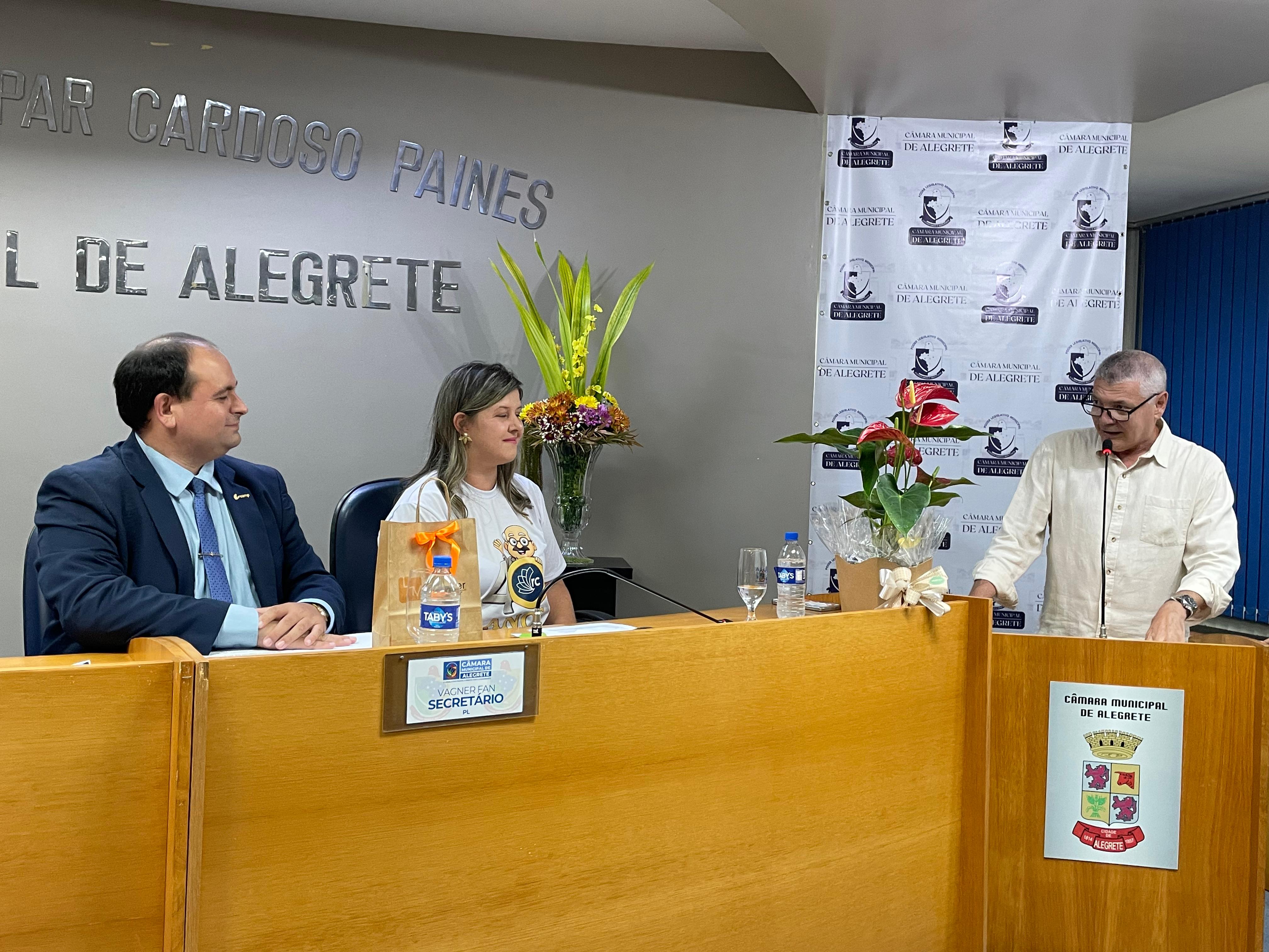 Proposta pelo vereador Pedro Paraíso (MDB), a sessão reuniu equipe de professores, colaboradores, alunos e familiares do icônico personagem da educação alegretense, professor Raymundo Luiz Marinho Carvalho. A diretora Giciéli Barúa destacou a jornada histórica do colégio, o perfil atual do modelo educativo, que produz equipes e estudantes felizes, e a parceria da Urcamp e da Fundação Attila Taborda, mediante atuação presente do reitor Guilherme Bragança.