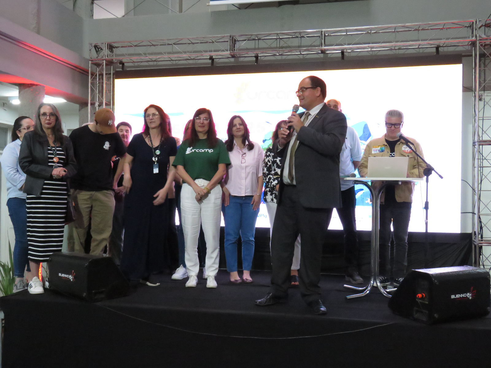 O reitor da Urcamp, professor doutor Guilherme Cassão Marques Bragança, destacou o impacto da 22ª Semana Nacional de Ciência e Tecnologia na formação científica e cidadã dos participantes. Em sua fala, emocionado, ele compartilhou momentos que simbolizam o alcance do evento. “Recebemos mensagens de escolas e visitantes elogiando a grandiosidade da nossa programação. É gratificante ver o quanto a Urcamp é importante para a região e para o Estado. Foram dias intensos, com todos os setores trabalhando em sintonia. O campus esteve impecável, e isso só foi possível graças ao empenho de professores, colaboradores e alunos. Sem vocês, nada seria possível”, ressalta.